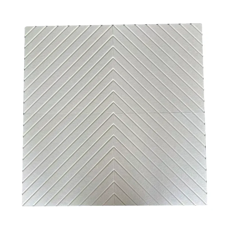 2. Səs udma + Estetik: ISO354 sertifikatlı səs udma performansı ofis səs-küyü, kinoteatrın əks-sədaları və sinif səsi kimi problemləri asanlıqla həll edir. Ox formalı V-yivli tekstura monotonluğu aradan qaldırır, divarları/tavanları məkanın vurğulanmasına çevirir;